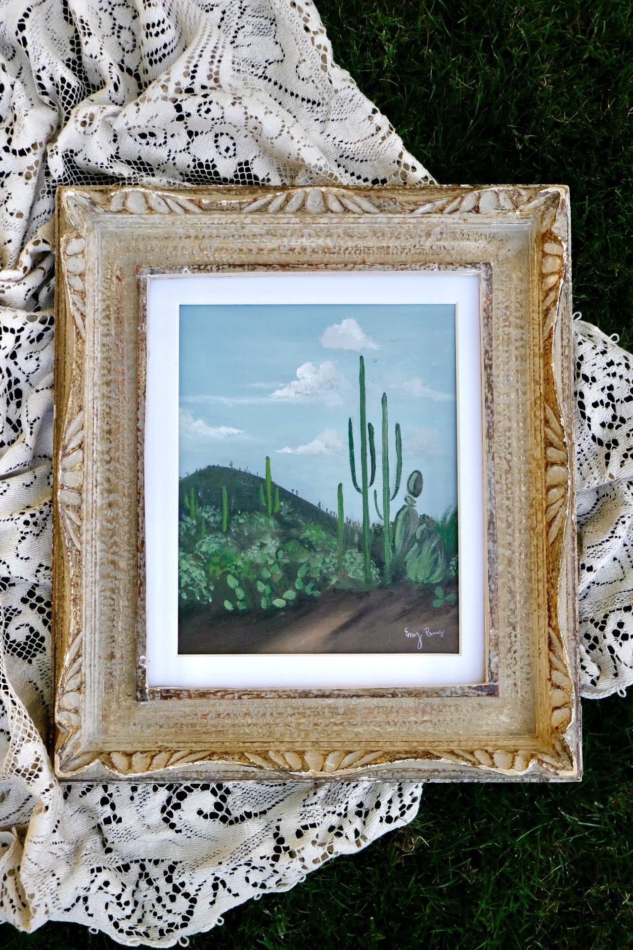 A 5 × 7 inch watercolor print on high quality watercolor paper. This print captures my original painting Desert Trail inspired by a walk through the Desert Botanical Garden. The Botanical Garden in Phoenix has always been one of my favorite places to reconnect with the desert and dear friends.